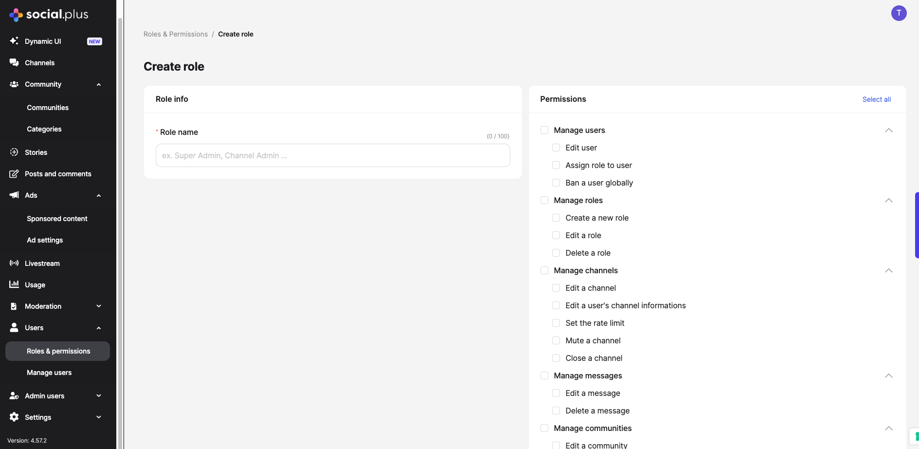 Go to the “Roles & Permissions” tab, click “Create New Role”, and select the permissions from the list below based on the role’s requirements.: